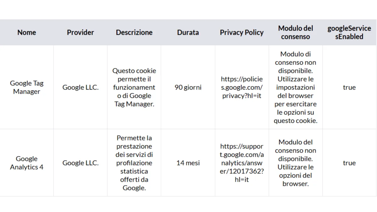Per maggiori informazioni riguardo ai servizi Google di seguito elencati, clicca il link: