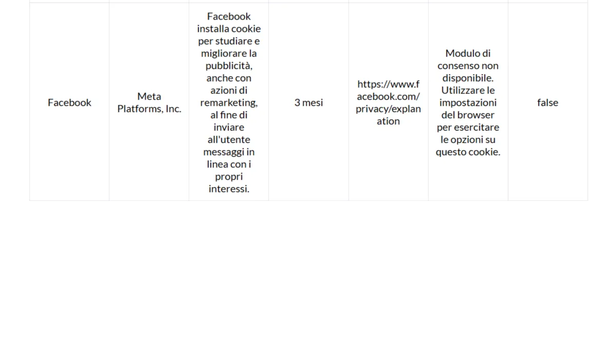 Il presente sito rilascia cookie di terza parte di profilazione pubblicitaria, come descritti nella tabella sotto riportata.
